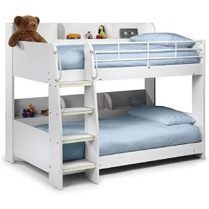 This unit is manufactured to ensure easy self-assembly. In addition to the central structure, it features a glow-in-the-dark ladder plus a few modest shelving areas, allowing both the top and bottom deck access to their own space.