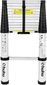 Telescoping ladders such as this one from Ohuhu are ideal for those with limited storage space. It retracts and sets up with only the press of a button. Its interlocking pins fasten in place, ensuring that the ladder does not shift its height. This ladder is strong yet lightweight as it consists of premium quality aluminum alloy. It is certified with EN131, making it an asset in heavy-duty commercial areas, and it supports up to 330 lbs.
