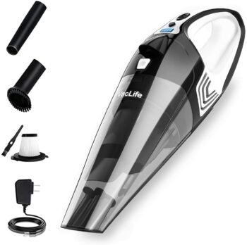 You don’t have to break the bank to get a good handheld vacuum. This pick from Ozoy comes with four attachments, is USB rechargeable and is a carrying bag. Best of all, it works for wet and dry cleaning projects. We like that this handheld vacuum comes with two removable and washable HEPA filters. You’ll get up to 30 minutes of continuous use between charges. And you can fully recharge the lithium-ion battery in just three hours.
