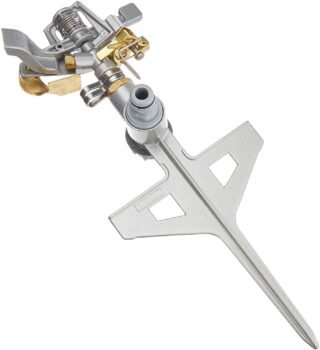 Make sure that your entire lawn or garden gets the water it needs with this tri-arm designed rotary lawn sprinkler. You’ll get 360-degree coverage with a total spray distance range from 26 to 32.8 feet. You can also adjust the nozzles from 15 to 45 degrees. Best of all you’ll get a double pass attachment. This sprinkler is made from durable ABS plastic and can support 2.5 to four bar pressure.